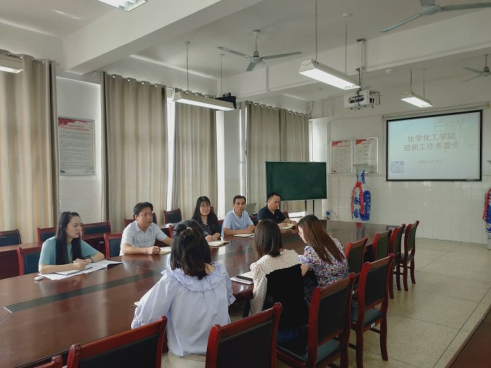 为了做好2021级新生入学工作,体现“围绕学生、关照学生、服务学生”的工作理念。化学化工学院于2021年9月9日在实验楼会议室召开了2021年迎新工作布置会。会议由党委书记史洪伟主持,院长卓馨、副书记刘茜、副院长王聪、张克营和全体辅导员参加此次会议。