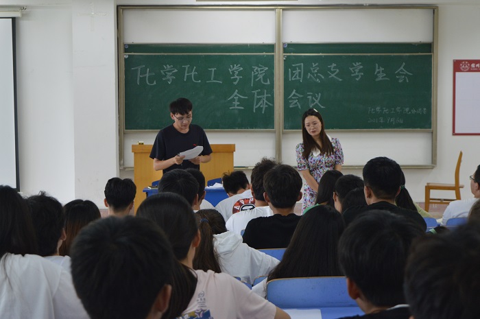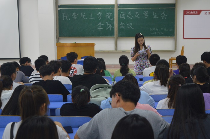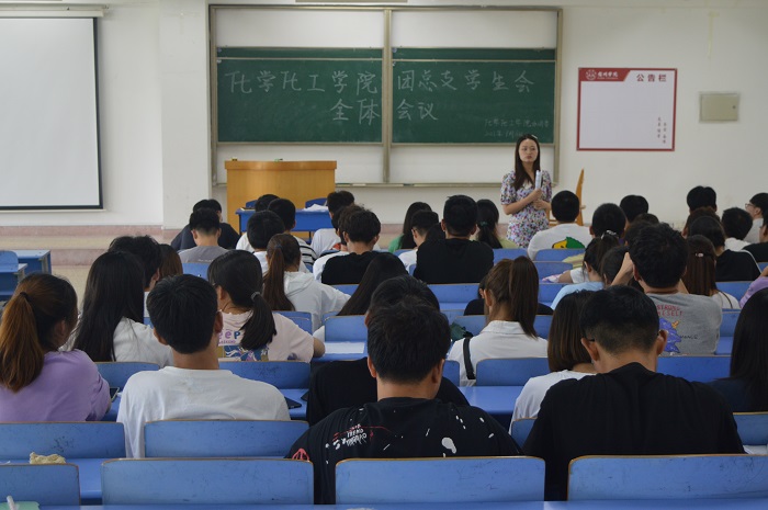 为更好的统筹学生管理工作,促进新学期各项工作尽快步入正轨。2021年9月6日下午1:00,化学化工学院在教学楼B201召开团总支学生会全体会议。辅导员阚淑锦主持会议,学生会全体成员参加会议。