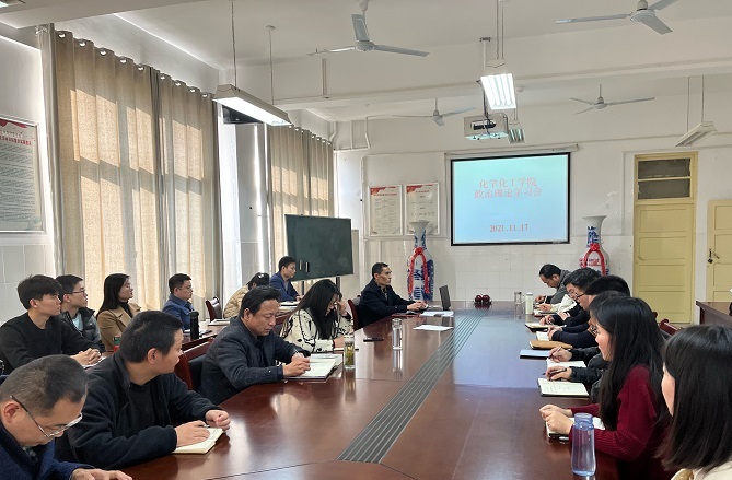 11月17日下午,化学化工学院在实验A楼401室召开“党的十九届六中全会精神专题学习会”,深入学习宣传贯彻党的十九届六中全会精神,切实把思想和行动统一到全会精神上来。会议由党委副书记史洪伟主持,全体教职工参加学习。