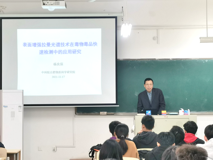 2021年11月17日上午,化学化工学院邀请中国科学院合肥物质科学研究院杨良保教授在逸夫楼B205教室作题为“表面增强拉曼光谱技术在毒物毒品快速检测中的应用研究”。讲座由化学化工学院党委副书记(临时负责)史洪伟主持,化学化工学院党委副书记、院长卓馨、副院长张克营、部分博士教师及19级新能源材料与器件专业全体学生参加。