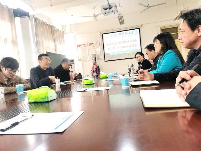 卓馨首先对宿州曼特博环保材料有限公司一行的到来表示了热烈欢迎,介绍了学院基本情况、学术科研情况等。表示化学化工学院立足当前发展阶段,面向宿州市产业转型发展和区域经济社会需求,带头持续推进“4510”校地联合科创行动,加大促进与宿州市地方企业的科研联合、平台构建以及产学合作。