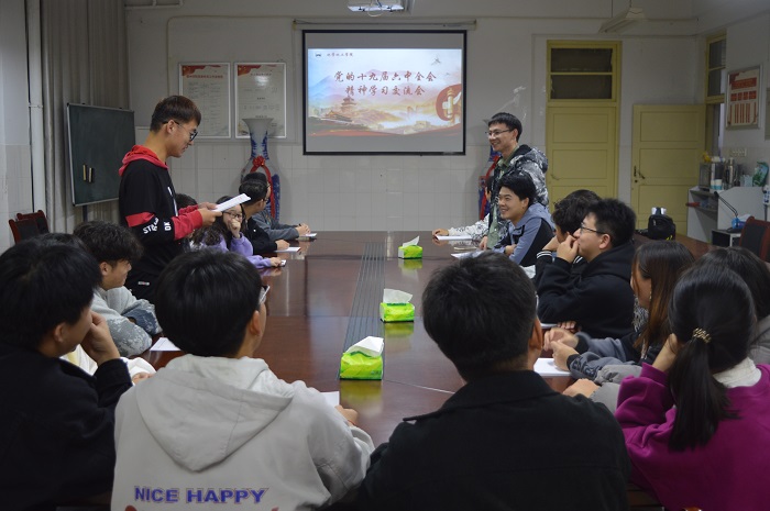 为深入学习贯彻党的十九届六中全会精神,提高学生干部政治思想素养, 11月19日晚,化工学院学生会在实验楼A楼401室开展了“党的十九届六中全会精神学习交流会”。全体学生会干部参加。