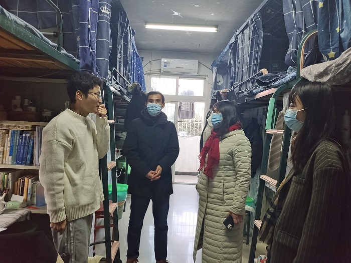 在走访过程中,学院老师与学生们进行了亲切交谈,实地了解学生学习生活情况,嘱咐各宿舍在疫情防控、人身安全、个人财产、卫生健康、内务整理等各方面应注意的问题,鼓励同学们积极备考,缓解压力。同时,要求辅导员要切实的关心学生的学习和生活,帮助他们解决实际的困难,要将安全、文明、法纪教育作为常规工作,持续不断的开展下去。