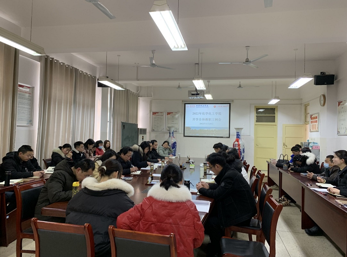 2022年2月19日上午,化学化工学院2022年春季学期新学期全体教职工大会在学院会议室召开,会议由学院党委副书记、院长卓馨主持,全体教师参加会议。