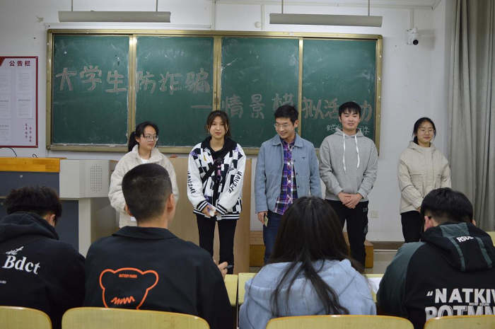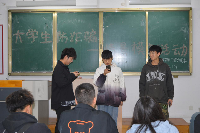 为进一步加大校园防诈骗宣传力度,深入推进防范电信网络诈骗工作,普及反诈知识,增强防范意识,营造安全和谐的校园环境。化学化工学院于4月4日在逸夫楼B206举办了大学生防诈骗之情景模拟活动。