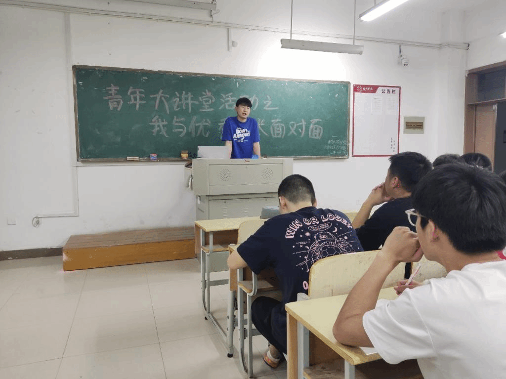 为帮助和鼓舞大学生在学习中学会挑战自我,提升自我,在奋斗中体验大学生活、学习的乐趣,化学化工学院于4月23日晚7点在逸夫楼B303举办了“青年大讲堂”之与优秀学长面对面活动。本次活动邀请了18过程装备与控制班晁龙学长担任此次活动的嘉宾,大一部分学生参加此次活动。