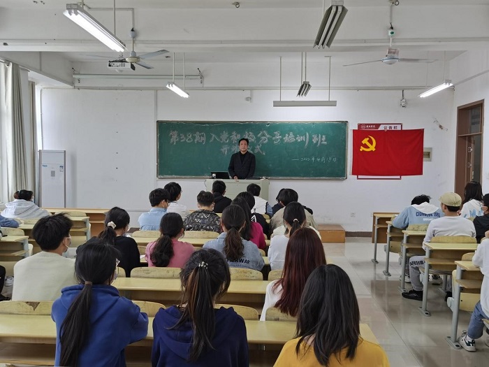 4月18日中午,化学化工学院在逸夫楼B206举行第38期入党积极分子培训班开班仪式,学院党委副书记史洪伟(临时负责)主持仪式,38期入党积极分子参加开班仪式。