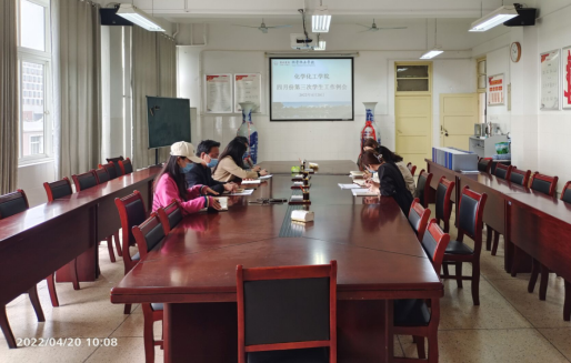 4月20日上午,化学化工学院在学院会议室召开4月份第三次学生工作例会。党委副书记(临时负责)史洪伟,党委副书记、院长卓馨,党委副书记刘茜,副院长王聪和全体辅导员参加了会议,会议由史洪伟主持。