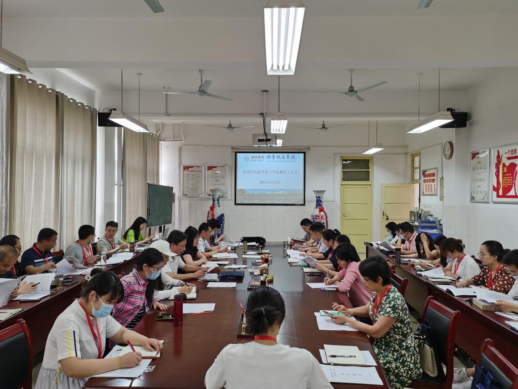 6月12日下午,化学化工学院2022年度教职工大会在宿州学院东区实验楼A401召开。会议由化工学院党委副书记史洪伟主持。