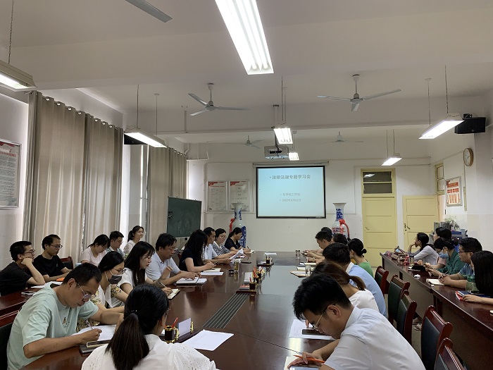 6月22日下午,化工学院在实验楼会议室召开法律法规专题学习会,党委副书记(临时负责)史洪伟主持,全体教职工参加会议。