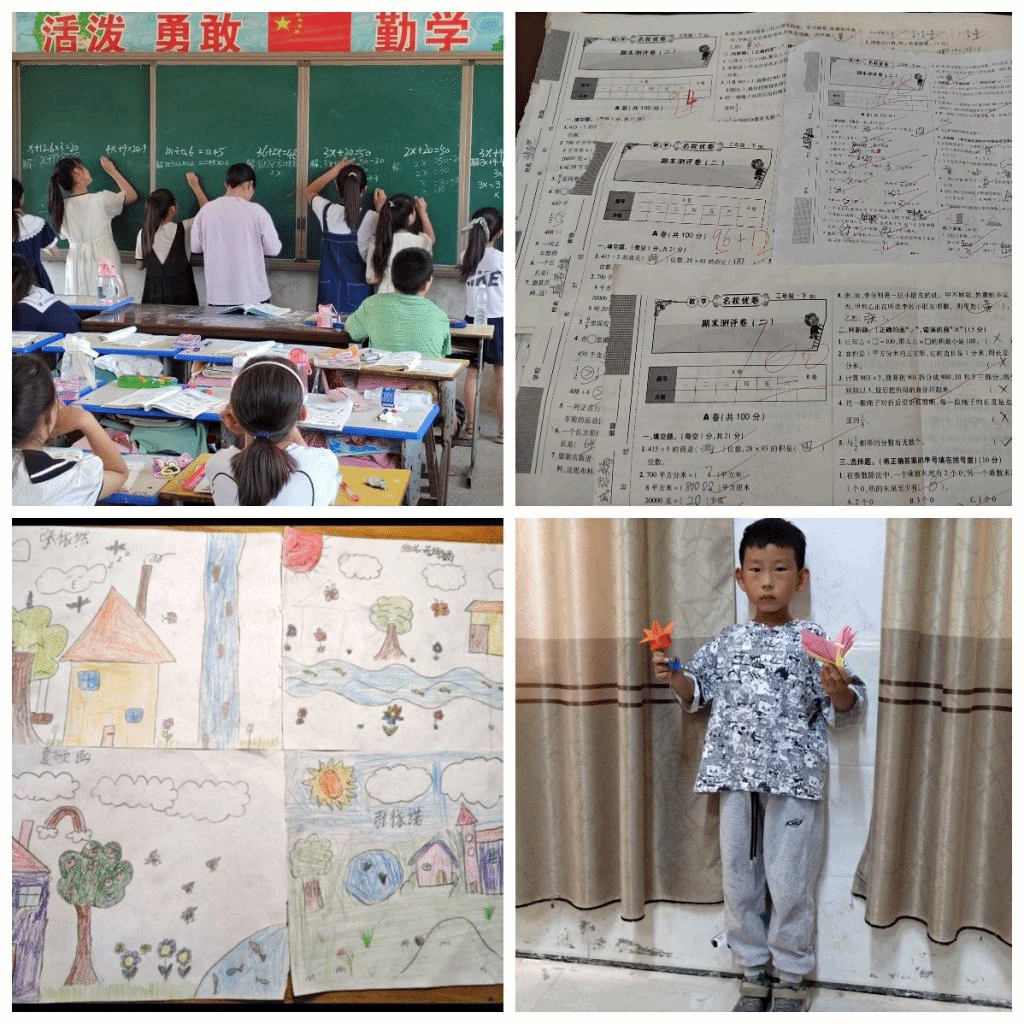 团队成员为小朋友们提供心理慰藉、学习辅导、文化传承、安全知识讲解以及丰富多彩的文体活动。趣味语文课上,眼里有对知识的渴望的光在闪烁;趣味数学课上,孩子们积极回答问题;趣味英语课上,传来书声琅琅;折纸课上,一只只活灵活现的纸鹤在他们的小手上舞动;科学实验课上,孩子们惊叹于科学力量的伟大;美术课上,孩子们用自己的创想,画出梦想的家园。