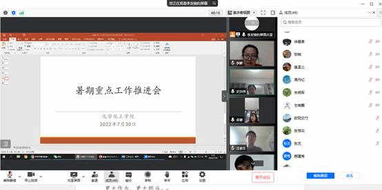 7月30日上午,化学化工学院线上召开了暑期重点工作推进会,会议由党委副书记、院长卓馨主持,全体教职工参加。