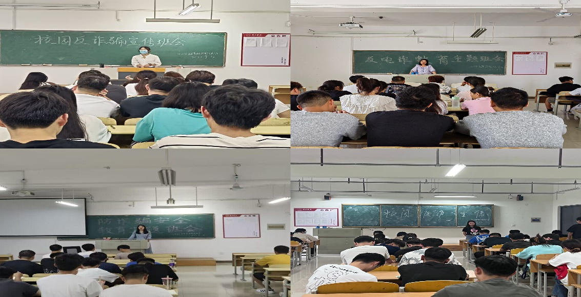 2019级新能源材料与器件班开展校园反电信诈骗会议,会议开始由班长组织全员安装注册国家反诈中心APP,同时班级反诈宣传小组常态化宣讲;2019级应用化学1班召开“反电诈”主题班会,辅导员向同学们讲述电信诈骗的危害性,并详细介绍了新型诈骗的主要手段以及预防措施,强调同学们要遵法、守法、懂法、用法,保护好自身利益;2020级新能源材料与器件班进行反诈演讲,首先班长和宣传委员向同学们介绍刷单返利、冒充客服、虚假贷款等具体诈骗案例,告诉同学们识破骗局的方式方法。接着辅导员就近期校园诈骗案件带领同学们讨论,再次强调了一定要加强个人防范意识;2021级应用化学1班在班会上组织学生上台发言,其中体育委员对校园贷款进行深刻描述,表达了反对看法,此次班会营造了浓厚的反诈氛围;2022级应用化学班利用班会为同学们具体分析了校园常见的诈骗手段及其特点,强调校园诈骗有法可防,一定要提高警惕,谨防被骗。