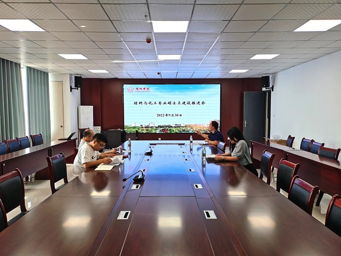 2022年9月30日下午,材料与化工专业硕士学位建设点工作推进会在实训楼1013室召开。会议由化学化工学院院长卓馨主持,化学化工学院科研副院长张克营,机械与电子工程学院科研副院长刘从虎、教研室主任赵广震及相关教师参会。