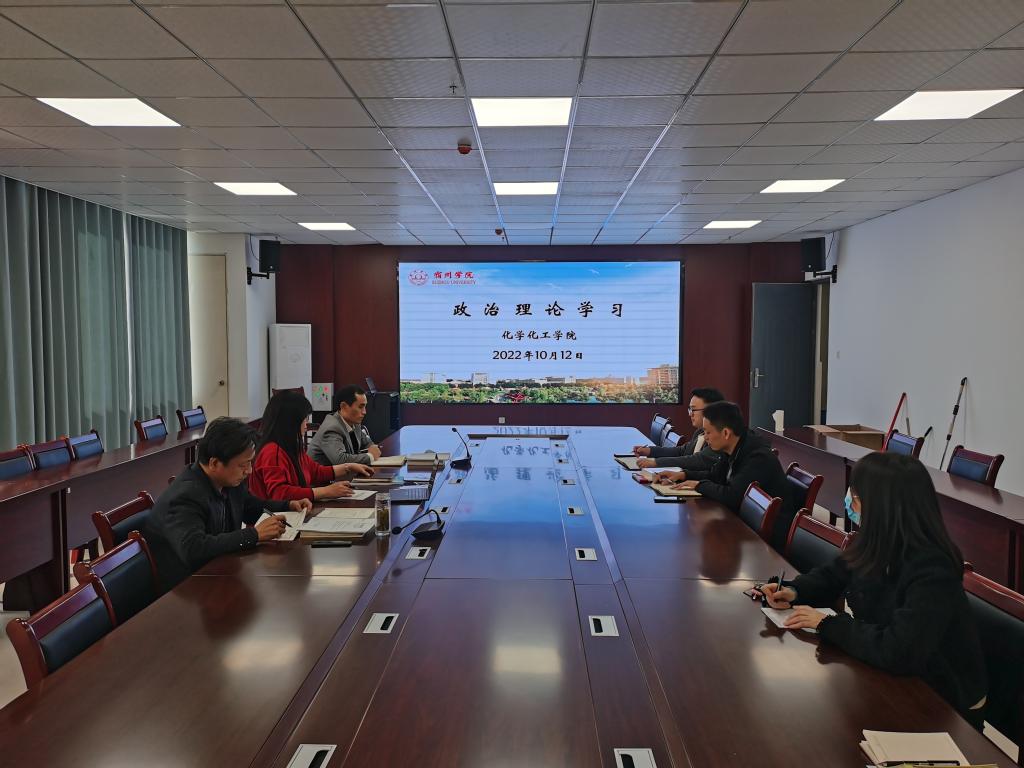 10月12日下午,化学化工学院在实训楼A1007会议室,召开教职工政治理论学习会,会议采取线上线下结合方式。党委副书记史洪伟(临时负责)主持,全体教职工参加。