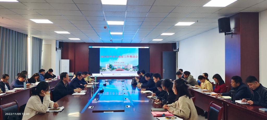 为扎实推进2023届毕业生就业工作,认真分析和研判就业形势,努力实现毕业生高质量和充分就业,11月9日下午,化学化工学院在实训楼A楼1013会议室,召开化学化工学院2023届毕业生就业工作推进会,党委副书记(临时负责)史洪伟主持会议,全体教职工参会。