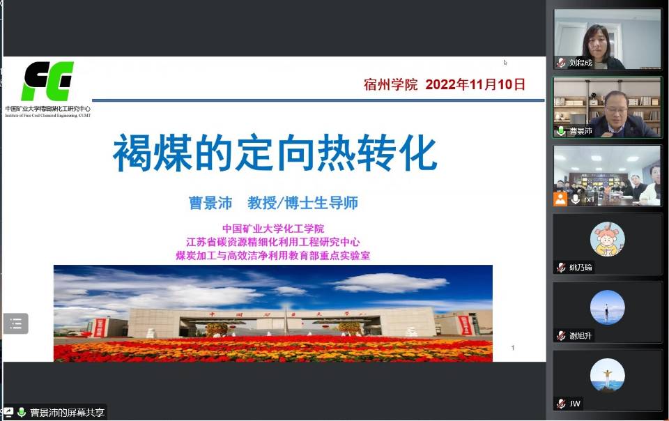 为积极推动“五育”双创大讲堂活动,落实双创教育与“五育”深度融合的育人目标,2022年11月10日,化学化工学院邀请中国矿业大学化工学院曹景沛教授、博导采用线上和线下结合的方式举行了学术讲座,讲座由党委副书记、院长卓馨主持,学院老师及新能源材料与器件专业学生参加本次讲座。