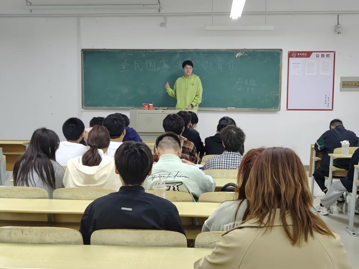 近期,各班组织开展了以“国家安全教育”为主题的班会。班会上广泛开展了宪法和国家安全法、反分裂国家法、国防法、反恐怖主义法、数据安全法、生物安全法、网络安全法、反间谍法、反有组织犯罪法等涉国家安全法律法规的宣传教育;同时,引导大家开展“国家安全教育主题短视频线上接力活动”,以及关注“中国反邪教”微信公众号,积极参与线上线下警示教育活动,提高防范邪教意识和能力。同学们畅谈自己对国家安全的认识以及国家安全与个人的关系,以历史和生活中的实际事例说明国家安全与个人利益息息相关,每个人都应该为国家安全贡献自己的力量。