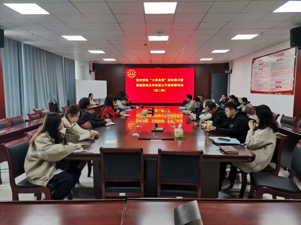 宿州学院教务处主办,化学化工学院承办的宿州学院第二期“大思政课”建设展示暨课程思政优秀典型公开课观摩活动于4月21日14:30在化学化工学院会议室顺利举行。本次活动邀请化学化工学院周丹红、谢永、张锐三位老师进行了课程思政优秀典型公开授课,旨在推广新时代思政课程改革与创新,提高教师的教学水平,为学生提供丰富多彩的课程体验。省级、校级课程思政示范课负责人、各专业专任教师参加了本次活动。化学化工学院副院长王聪主持本次活动。