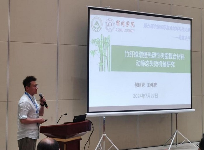 郝建秀博士在天然纤维复合材料分会场上作了题为“竹纤维增强热塑性树脂复合材料动静态失效机制研究”的报告。并与与会专家就相关前沿问题进行了交流和讨论。