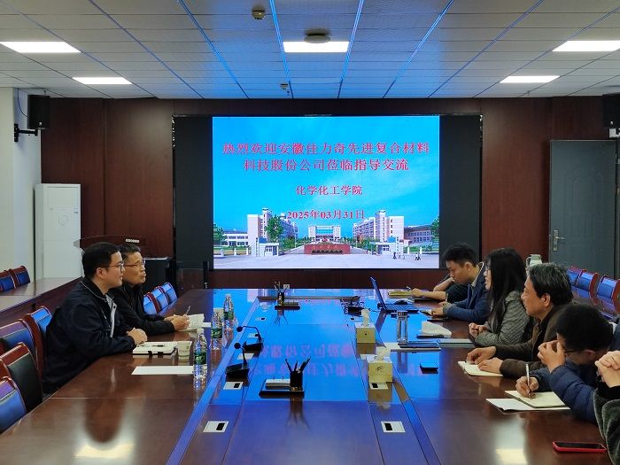 为进一步深化科教融合,推动校企紧密合作,3月31日下午,安徽佳力奇先进复合材料股份有限公司(以下简称“佳力奇”)研究院技术负责人卢国军、技术总工程师龙国荣一行莅临化学化工学院考察交流。化学化工学院党委书记史洪伟和部分博士参加了交流。本次交流会由化学化工学院党委副书记、院长卓馨主持。