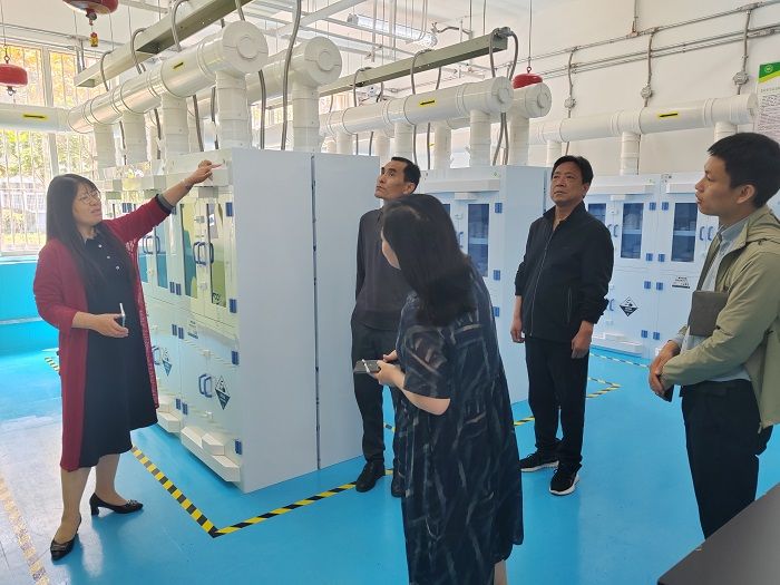 为了加强“五一”假期实验室安全管理, 2025年4月30日下午,化学化工学院党委书记史洪伟,党委副书记、院长卓馨,党委副书记蒋林梅,副院长王聪等对学院实验室以及化学品暂存室等场所进行安全大检查。