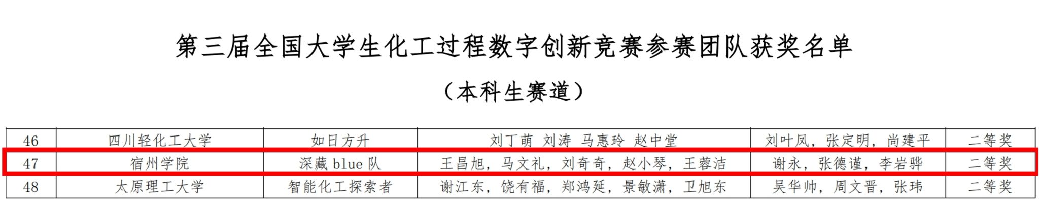 近日,由中国化工教育协会主办、大连理工大学承办的“百子尖杯”第三届全国大学生化工过程数字创新竞赛全国总决赛在大连举行。我院由谢永、张德谨、李岩骅指导的“深藏blue队”荣获全国二等奖。