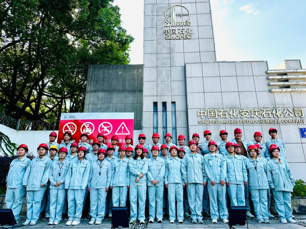 2025年11月9日至14日,化学化工学院23级应用化学专业学生赴中国石化安庆石化公司开展为期一周的工业实习。作为安徽省“双带头人”教师党支部书记“强国行”专项行动重点项目,本次实习由学院党委书记史洪伟带队,应用化学与新能源教研室教师党支部副书记任雪宇、纪检委员徐振华等党员教师共同参与,以“党建+专业实践”模式搭建理论联系实际平台。