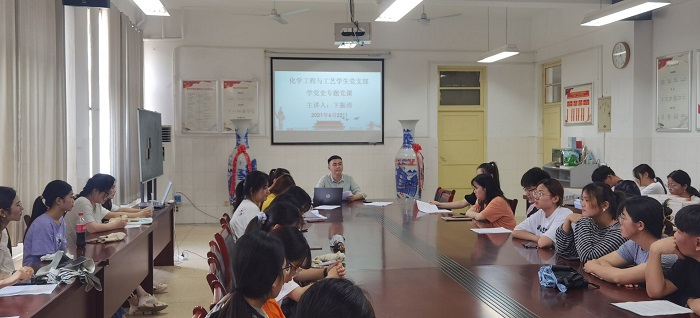 2021年6月22日,化学工程与工艺党支部在实验楼a楼4楼会议室展开学习党史活动,本次活动由卞振涛老师主持,化学工程与工艺党支部的党员及预备党员参加了会议,未能到场的党员参加了线上会议。