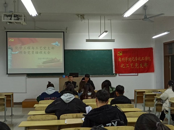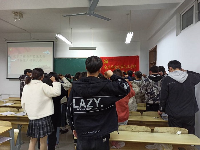 2021年3月22日,化学化工学院化学工程与工艺党支部在逸夫楼B301召开接受预备党员大会,党支部书记卞振涛老师以及全体党支部成员参加。