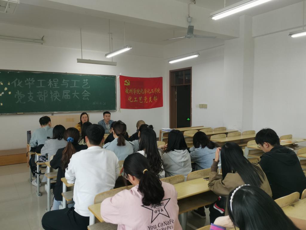 2020年10月26日,化学工程与工艺党支部举行了党员换届会议,选举产生新一届的委员和支部书记,本次换届会议符合换届流程,紧接着竞选人进行了竞选以及投票,全体党员采用无记名投票方式,产生了支部委员以及支部书记,在本次换届改选工作中,选取了卞振涛为党支部书记,党支部委员是徐虎同志和石晓甜同志。