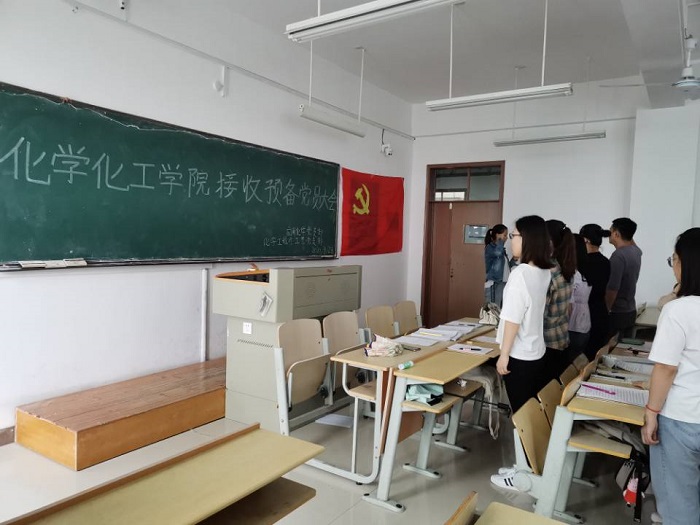 2020年9月28日中午,化学化工学院应用化学党支部和化学工程与工艺党支部在逸夫楼B206教室召开“接收预备党员大会”,会议由应用化学党支部书记郭萍倩主持,各支部全体党员以及2020年上半年发展对象参加。