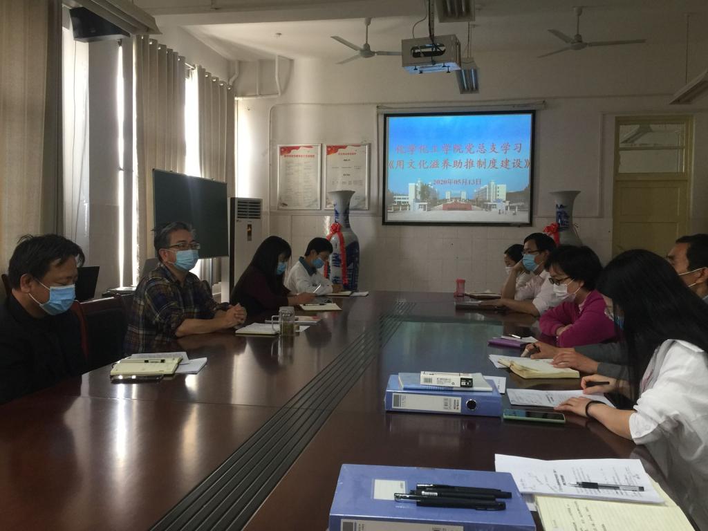 2020年5月13日,化学化工学院在会议室开展学习《用文化滋养助推制度建设》专题学习活动。会议由党总支书记徐基贵主持。