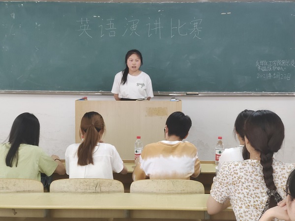 为营造良好的英语学习氛围,推进大学英语教学改革,改善同学们的口语面貌,发展综合素质我校化学化工学院权益维护中心2021年5月22日14:00在逸夫楼B307举办了宿州学院第十一届英语月之大学生英语演讲比赛初赛