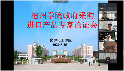 2020年5月25日,宿州学院化学化工学院进口设备采购专家论证会在东区实验楼会议室和线上同时召开,来自中科院合肥物质研究院、安徽大学等高校的五位专家和国资处、化工学院相关老师参加此次论证会。